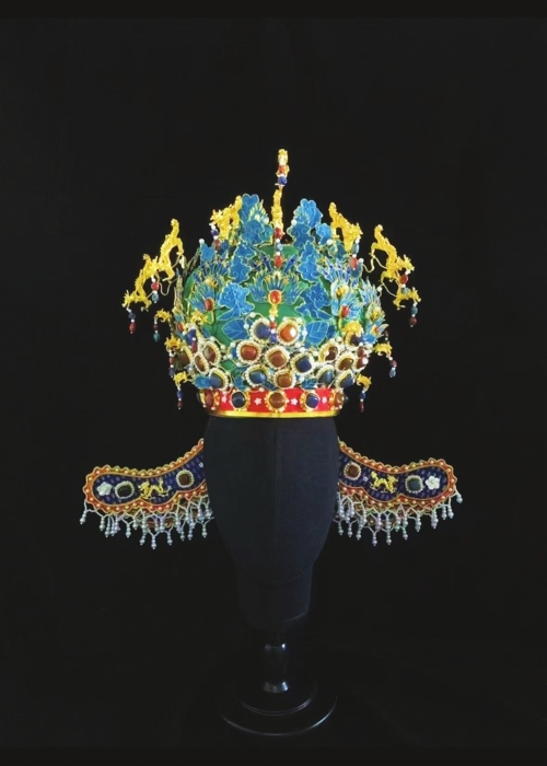 冀晓悦的《十二龙九凤冠》同样惊艳四座。一顶凤冠璀璨夺目,引得一位资深藏家忍不住赞叹:“太精致了!这翠羽的光泽,宝石的镶嵌,简直跟国家博物馆里的真品一模一样。”这顶复刻自明代孝靖皇后礼服冠的作品,凝聚了冀晓悦无数的心血与智慧。它以漆竹为胎,金丝为骨,十二金龙昂首欲飞,龙须飘逸灵动;九只凤凰振翅待翔,凤尾华美绚丽,每一处细节都精雕细琢,彰显着明代宫廷造作的巅峰水准。