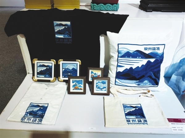 漫步在文创展区,武俊敏的《泉州盛境》作品格外引人注目。文化衫、靠枕、休闲包等日常生活用品上,一针一线都巧妙地融入了泉州海上丝绸之路的文化元素,生动地展现出泉州深厚的历史底蕴与独特的文化魅力。一位来自福建的观众驻足良久,“这幅刺绣竟能把海丝风情表现得如此鲜活,仿佛能让人看到当年海上丝绸之路的繁华盛景。”