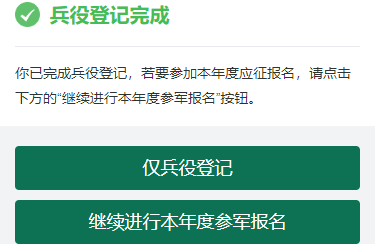 若要进行2025年参军报名,请点击“继续进行本年度参军报名”按钮,完善个人信息。